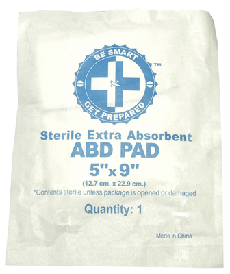 Each trauma dressing measures 5” x 9” and is used to help control bleeding. You get 50 trauma dressing pads in this box.